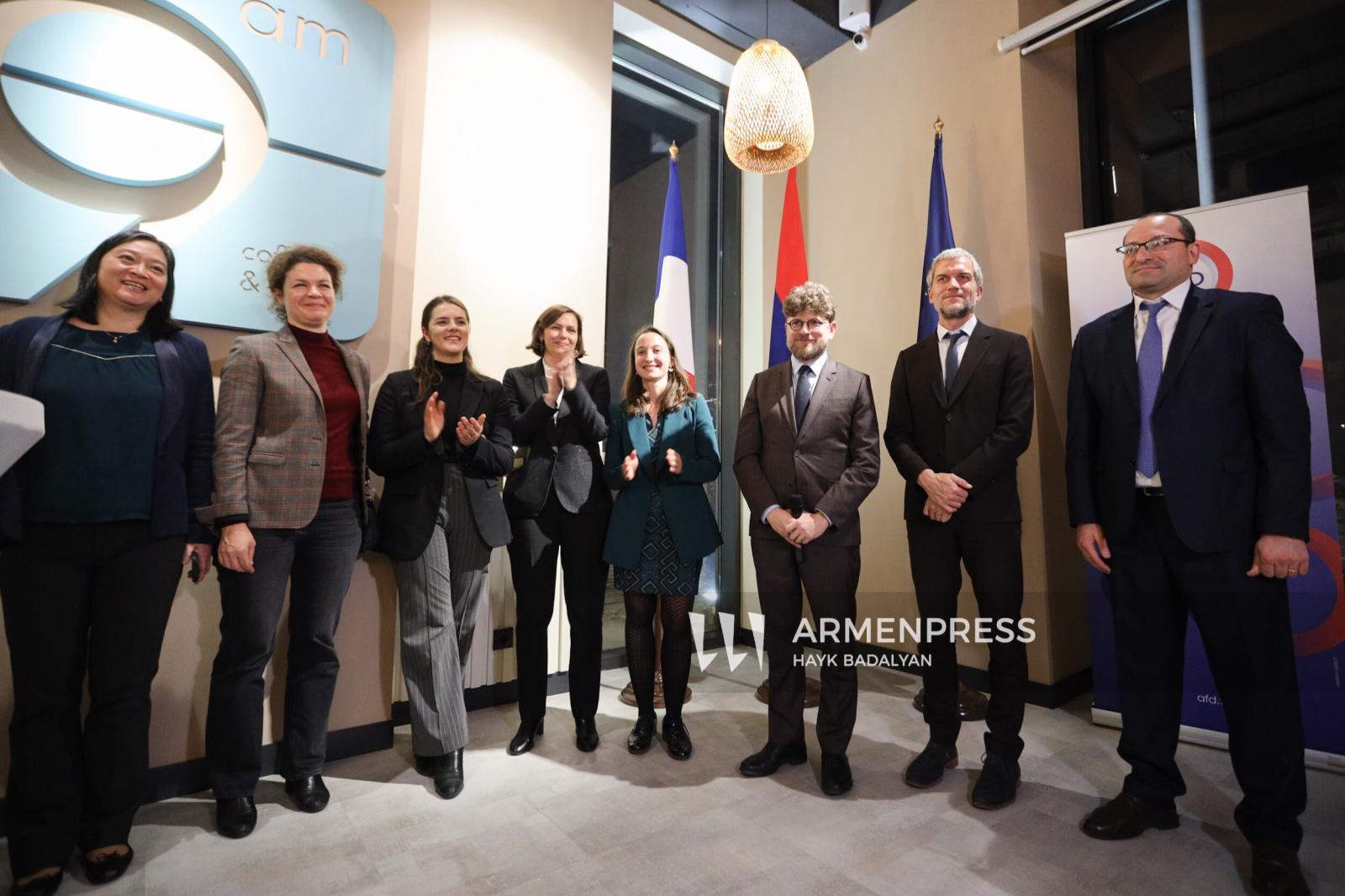 À l’inauguration d’Armen’livres, Hasmig Chahinian lit le mot en français de Chaghig Meguerditchian en la mémoire de Haroutioun Kurkdjian