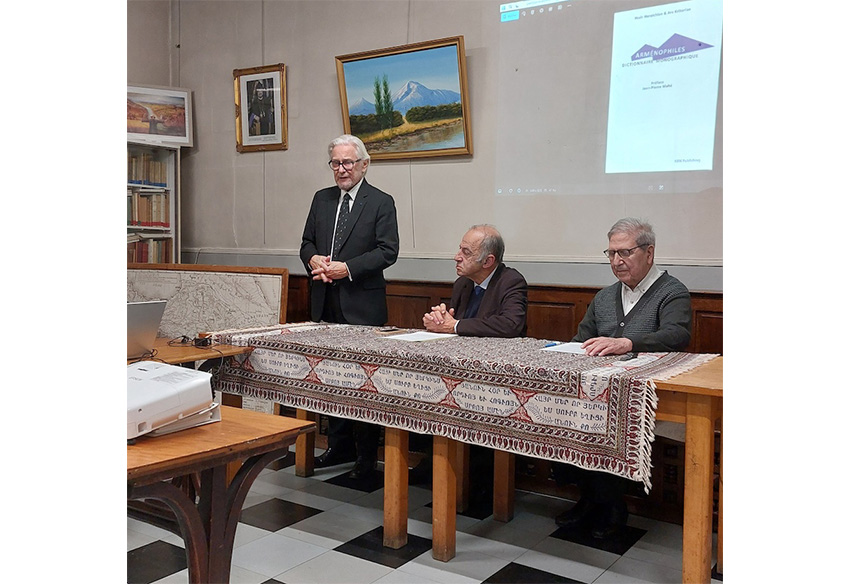 À l’inauguration d’Armen’livres, Hasmig Chahinian lit le mot en français de Chaghig Meguerditchian en la mémoire de Haroutioun Kurkdjian